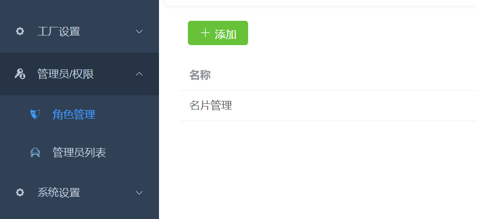 可针对“产品管理”、“动态管理”、“名片管理”、“访客管理” 4个菜单进行分管理员设置权限进行管理。