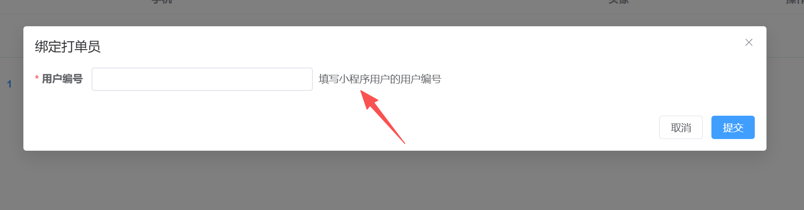 这里的用户编号为小程序的注册用户,可以在左侧菜单,用户管理,用户列表里面,第一列查看并复制;